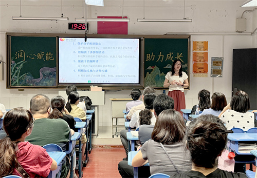 周凌峰副校长以其丰富经验为基础,运用鲜活实例分享了帮助孩子快速融入新环境、建立自信的方法。与此同时,各班级班主任也详尽地剖析了新生的学习特性及成长需求,并针对个体差异给予定制化的亲子互动建议,鼓励父母与子女之间展开更多深层次的情感交流,一同克服学习道路上可能遇到的各种障碍。