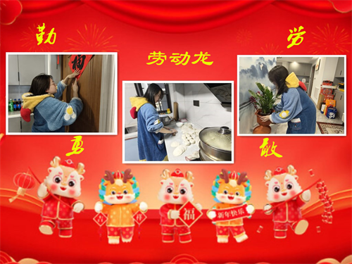 勤劳勇敢是中华民族的传统美德,在“龙”年伊始,学生们通过张贴春联、打扫房间、烹饪美食、志愿者服务等方式践行了中华传统美德,同时也培养了自己的劳动意识,锻炼了自己的劳动技能,促进了个人发展。