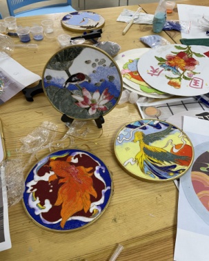 王云河秉承“精业怡美”的校训,涵育向善求真、自信包容、敬业担当、舒展豁达的“怡美生活者”。以美育浸润学生,通过美育的教育,可以在多个方面提升学生对文化的理解、审美素养、艺术感知表现,以及实践创意方面的核心素养,丰富学生的精神文化生活,让学生身心得到发展,愉悦和活力更加彰显,人格更加健全。在进行美育工作时,必须保持以道德为根本,深入贴近时代生活,依循美育特质,传承和弘扬中华美育之精髓。传承600多年的景泰蓝工艺是我国首批非物质文化遗产,掐丝珐琅画脱胎于古老的景泰蓝工艺,具有天然的亲和力,感染力,激发学生对传统文化的认识,坚定文化自信,能丰富学校美育教学的内容,促进美与课程改革,提高学生的创新实践能。在艺教处和教务处的帮助下,湖滨中学掐丝珐琅社团于2022年9月份成立。掐丝珐琅社团成员以高一学生为主体,成员在一个课程周期(12课时)里面了解景泰蓝,认识熟悉掐丝珐琅工艺,并学会制作一件简单的掐丝珐琅画作品。生团成立以来,社团成员参与学校的国庆宣传,参与市教育局组织策划的“我为良师”活动展示。把有趣的掐丝珐琅画引入中学美术教学,不仅扩展了课程内容,也让学生更好地领略传统文化之美,深刻感受其独特韵味,有助于传承和创新中国的文化传统。通过学习和实践掐丝珐琅画,学生不仅可以提升实践技能和美术素养,还能传承优秀的传统文化,激发民族自豪感。