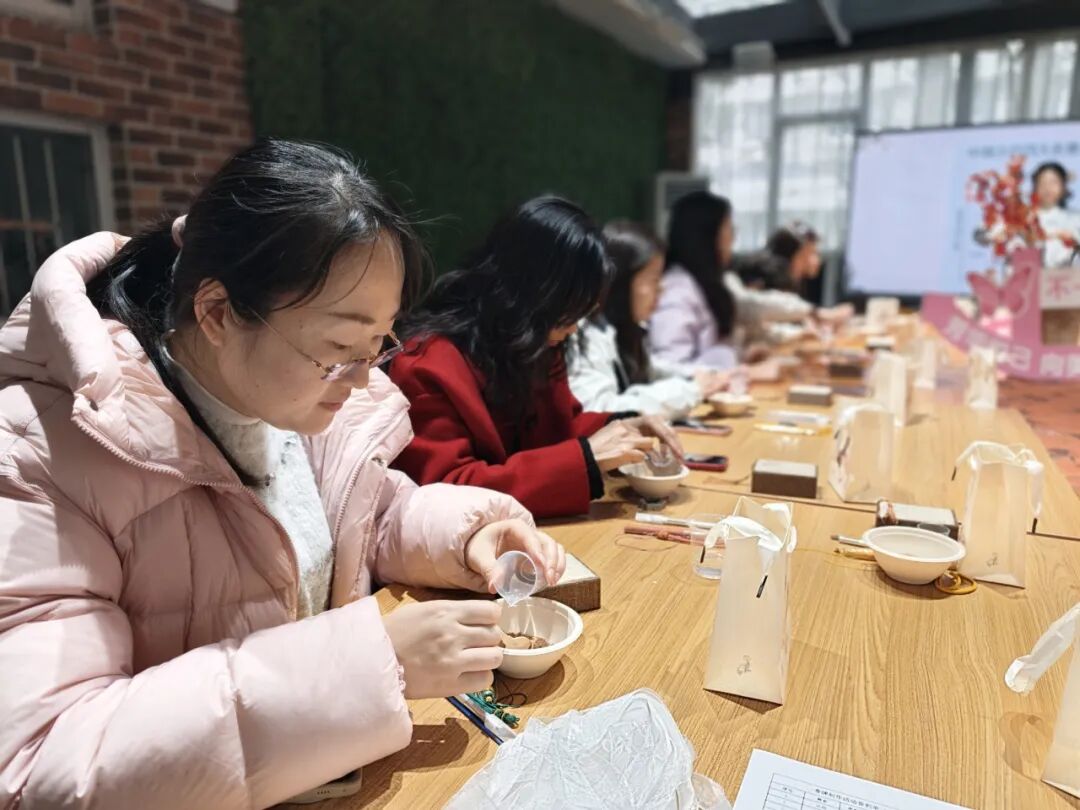 为丰富女教职工的精神文化生活,舒缓工作压力,学校工会特别组织了一场别开生面的“古法香牌制作”体验活动。