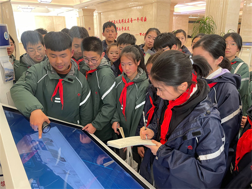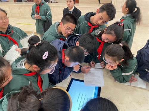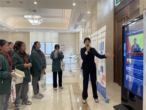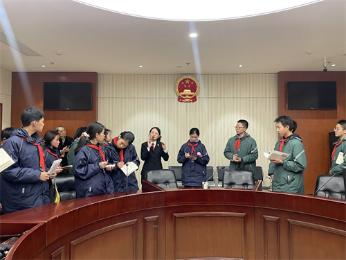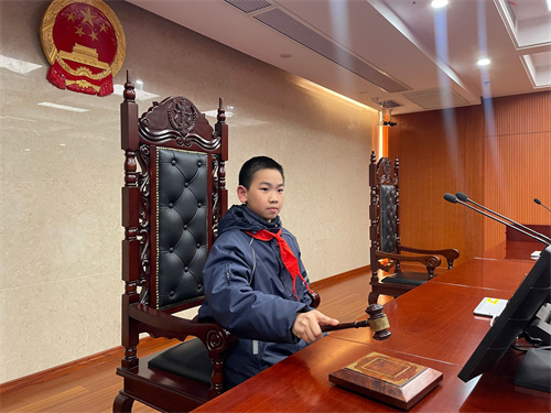 在法院工作人员的引导下,同学们了解了法院的工作职能、立案程序和法庭设置等情况,观看、体验了法庭智能化的设施设备,并体验敲响法槌,扮演了一次“小法官”,切实感受司法的公正和法律的威严。