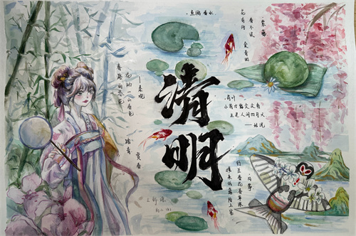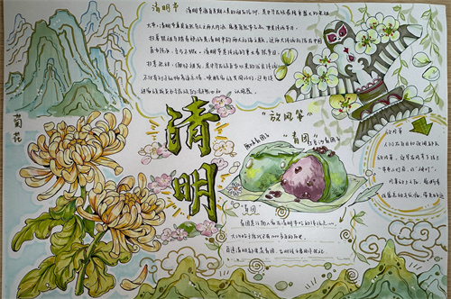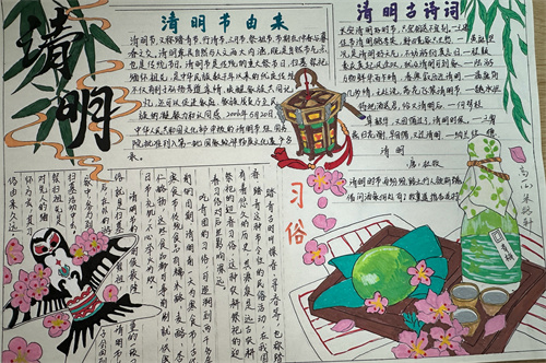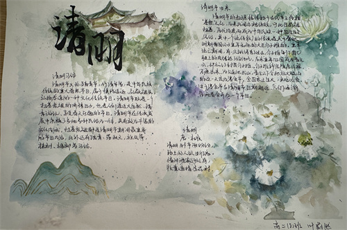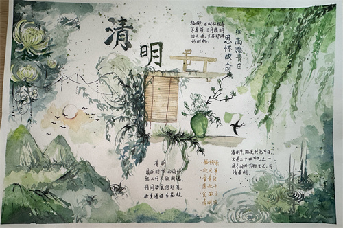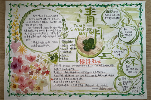 巧手绘哀思,笔墨寄浓情,学生们拿起手中的画笔,描绘出一幅幅清明小报,表达真挚情感,寄托无限哀思,传承传统文化。纸张是平面的,但描绘的感情是立体的,文字是平淡的,但蕴含的情感是浓烈的,在一笔一划、一色一彩中,湖滨学子们心怀希望、目光坚定、步履铿锵!