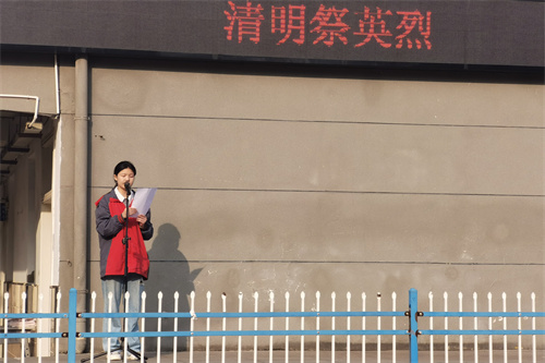 清风徐徐,国旗伴随着国歌冉冉升起。升旗仪式上,高二(1)班张子月同学号召大家珍惜先烈们用鲜血换来的幸福生活,牢记烈士遗愿,传承红色基因,争做红色传人,勤奋学习,努力成才,做担当民族复兴大任的时代新人,永远缅怀那些为祖国奉献自己宝贵生命的英烈们,致敬革命英雄!