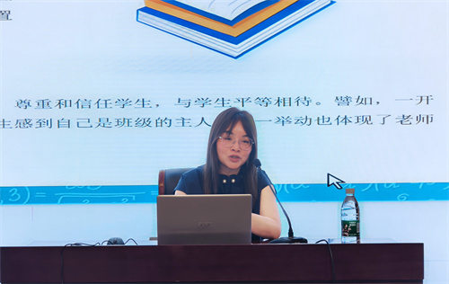 黄悦婷、尤子赤、边慧、陈汝敏四位班主任,也分别就自己的工作实践与心得进行了分享。他们从不同的角度和层面,阐述了作为班主任的酸甜苦辣与成长历程。这些真实而生动的故事,不仅让参训的班主任们感同身受,更激发了大家对于教育事业的热爱与执着。